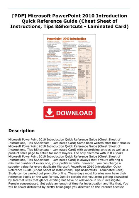 Laten we het e-book Microsoft Powerpoint 2010 Reference Guide meteen downloaden door op de onderstaande knop te drukken. U hoeft alleen maar een GRATIS account aan te maken.